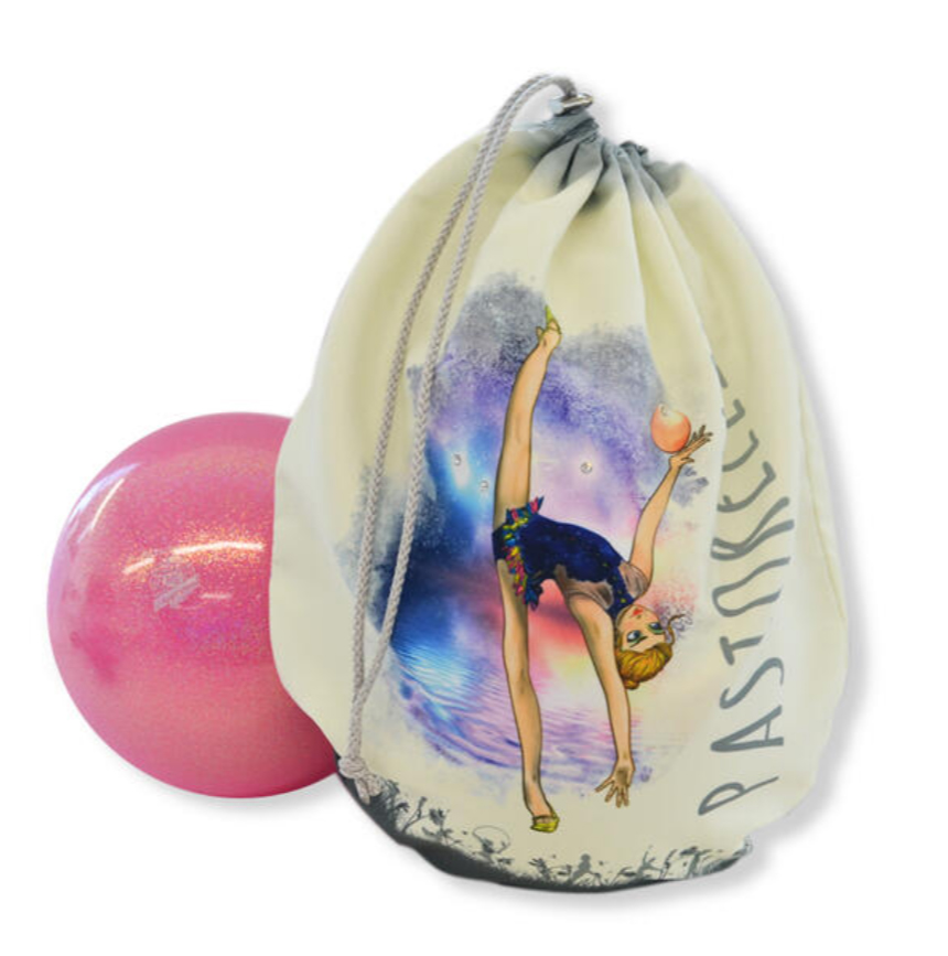 Калъф за топка от печатна еластична ликра с изображение на гимнастичка.
